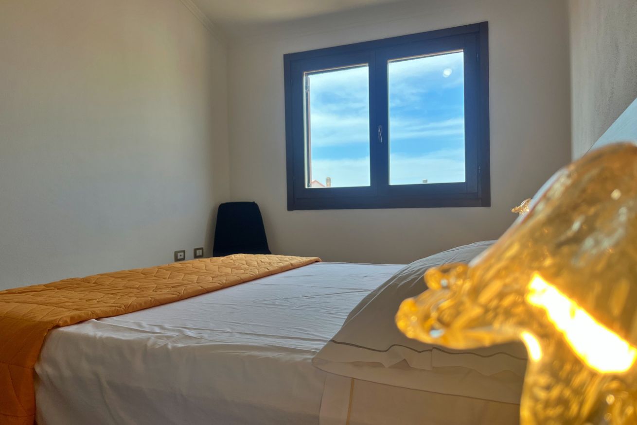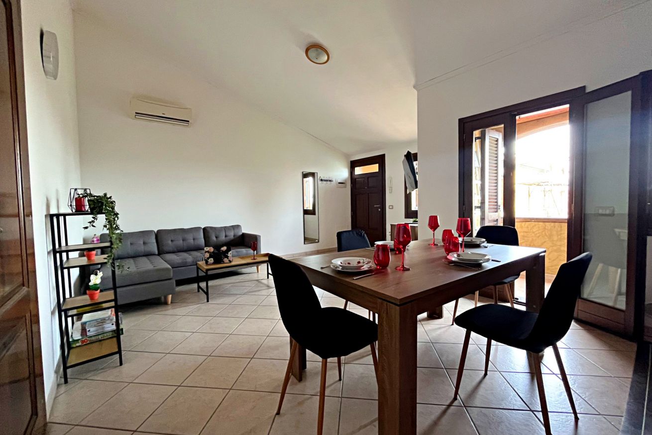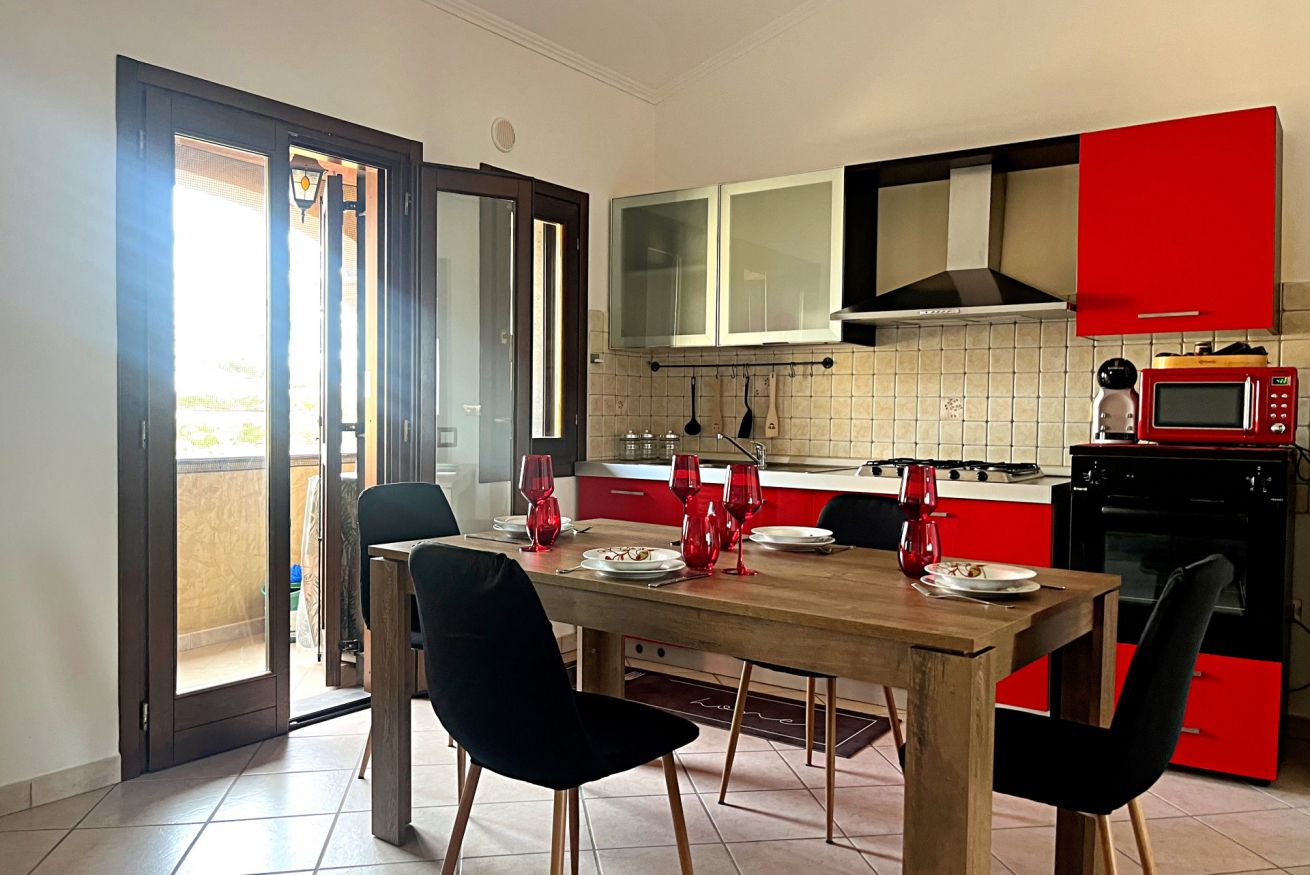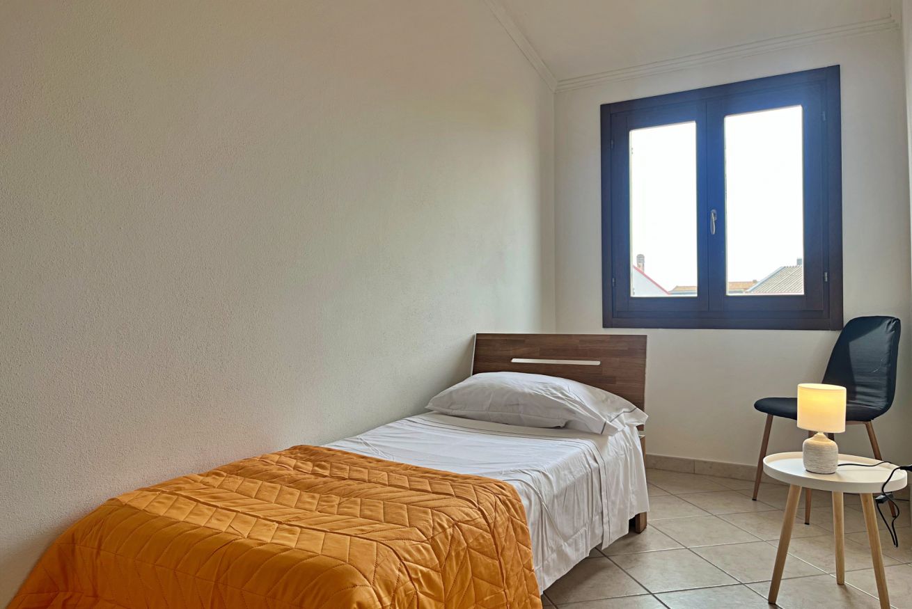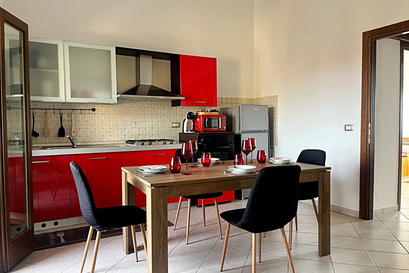 L’appartamento si apre su un luminoso soggiorno con angolo cottura, un ambiente funzionale e ben organizzato, perfetto per rilassarsi dopo una giornata al mare o per cucinare in autonomia grazie alla cucina completamente attrezzata. La zona notte è composta da una camera matrimoniale spaziosa e arredata con gusto, una seconda camera singola ideale per un ospite aggiuntivo o per un bambino, e un bagno moderno dotato di una comoda doccia.