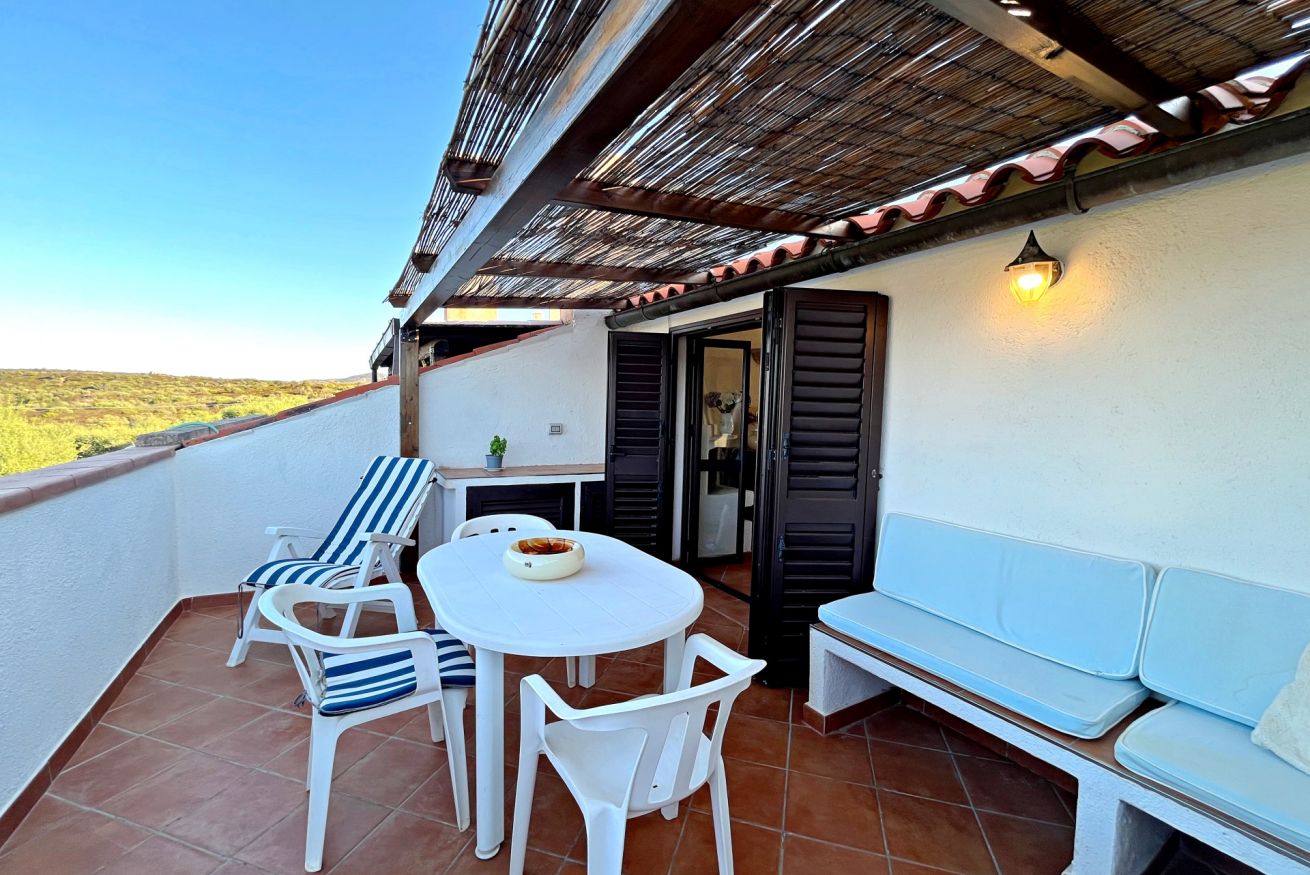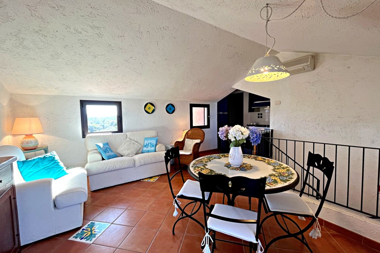 Scoprite il fascino di Porto Istana in questo accogliente appartamento al primo piano del Residence Li Ligni Bianchi. La zona giorno, impreziosita da tocchi di azzurro e una terrazza che offre una vista mozzafiato dell'isola di Tavolara, invita al relax e al piacere della convivialità. La cucina, con i suoi accenti ceramici e dettagli in blu, è perfetta per chi ama la cucina mediterranea. Due camere da letto promettono sonni tranquilli, e due i bagni con piastrelle verdi e finiture moderne. Questo appartamento è una finestra aperta sul mare, il luogo ideale per la vostra prossima vacanza da sogno.