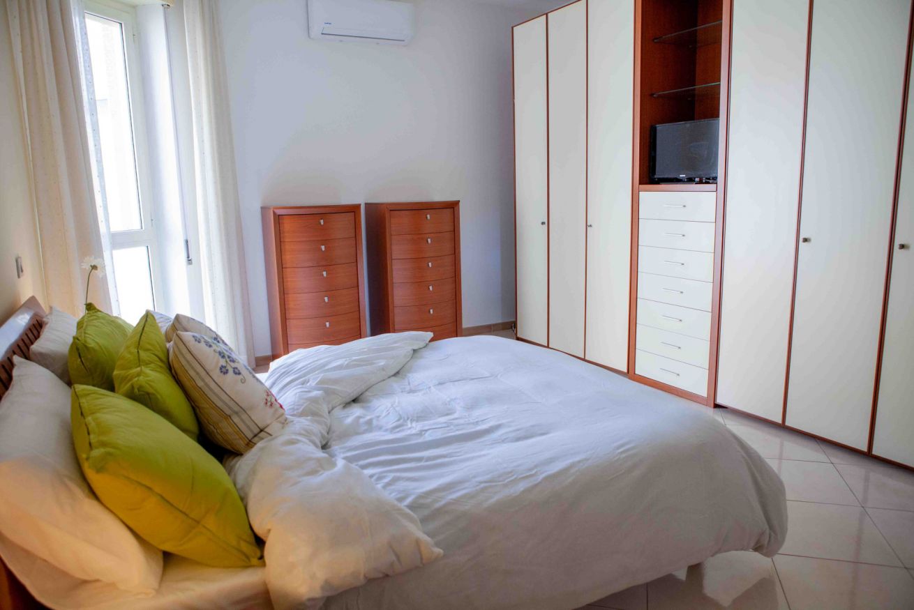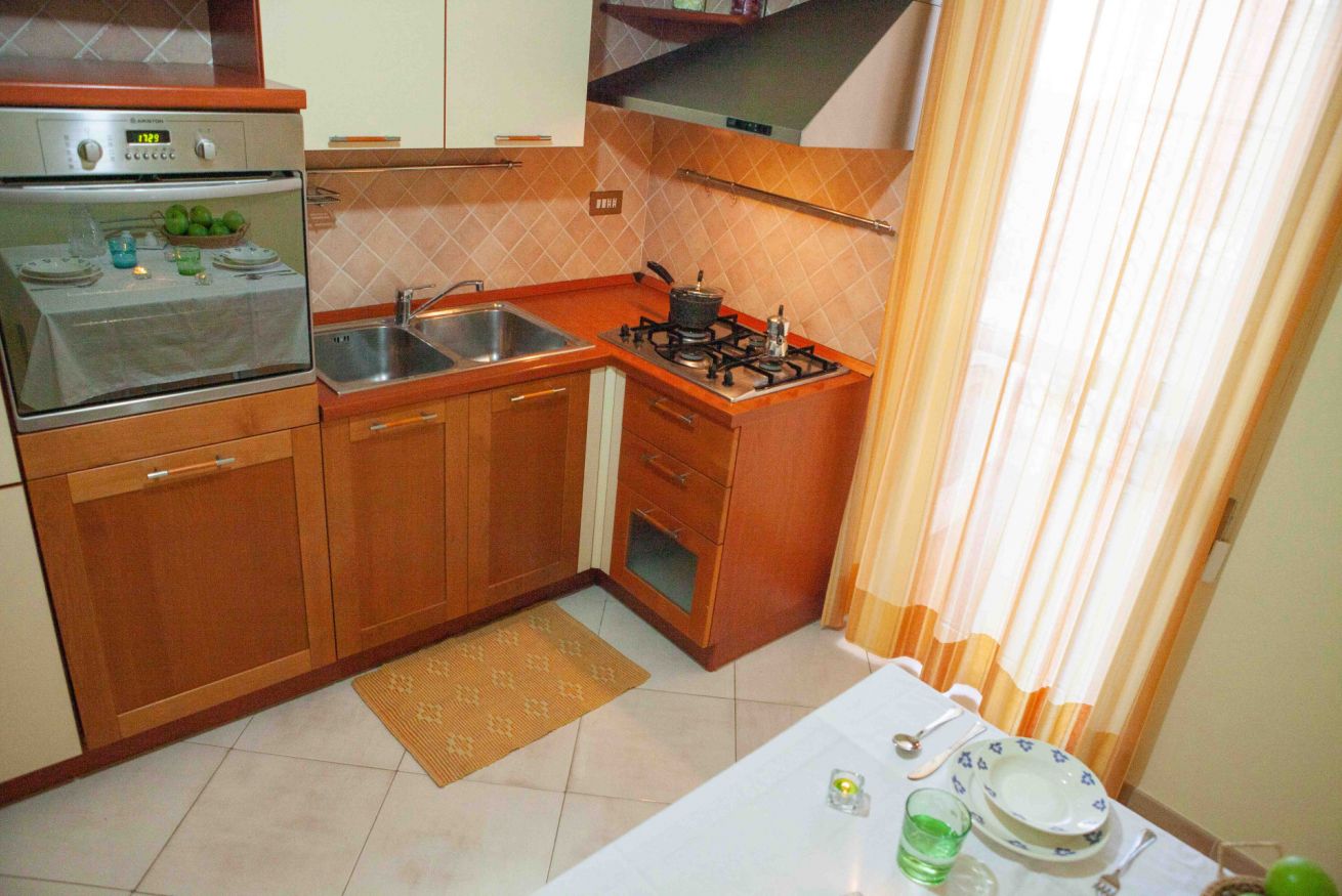 L’abitazione si apre su un luminoso soggiorno, uno spazio accogliente dove rilassarsi dopo una giornata di mare o lavoro. La cucina abitabile, completamente attrezzata, è il cuore della casa: dotata di lavastoviglie e di tutto il necessario.