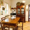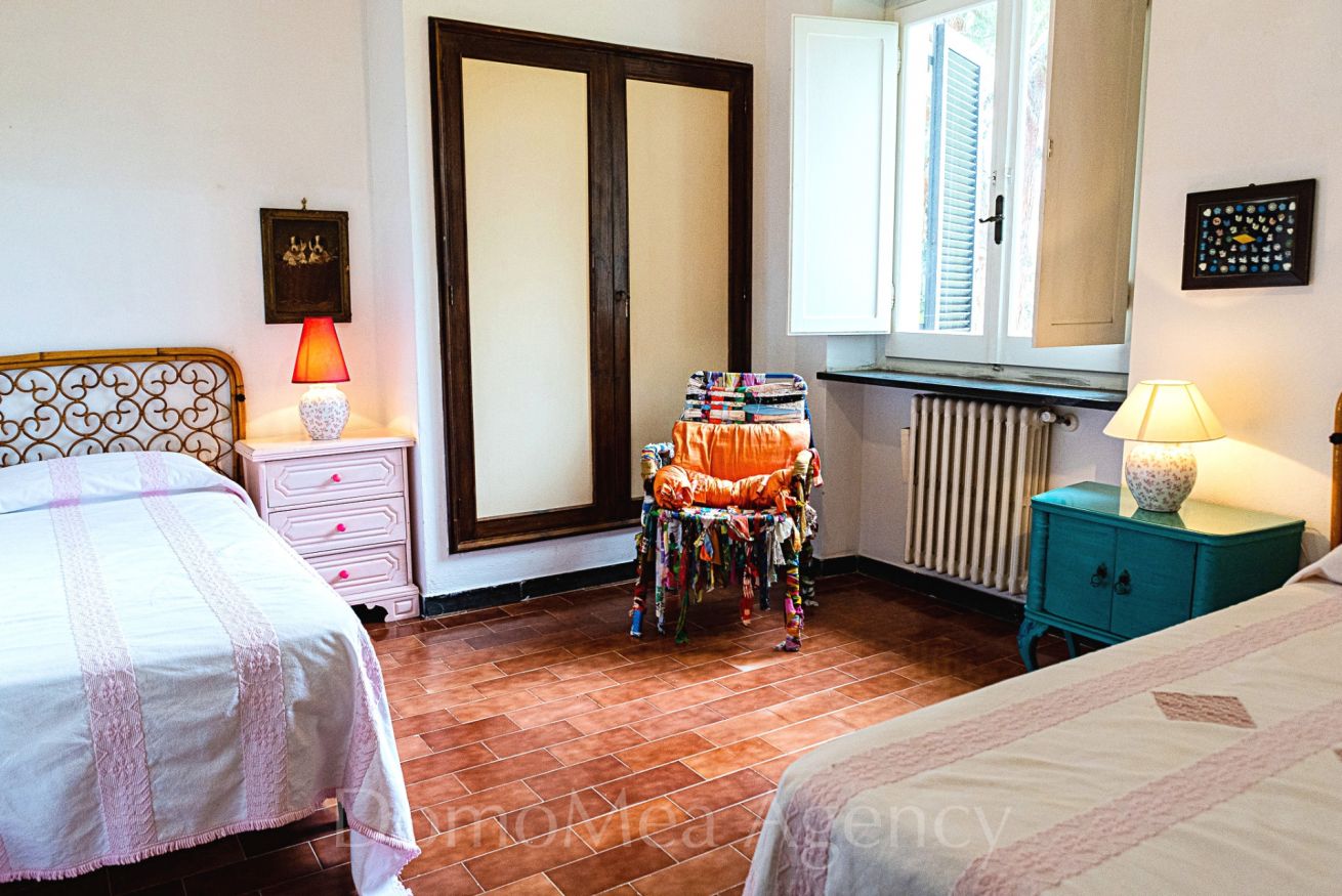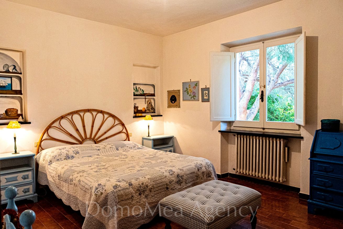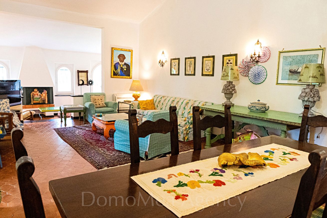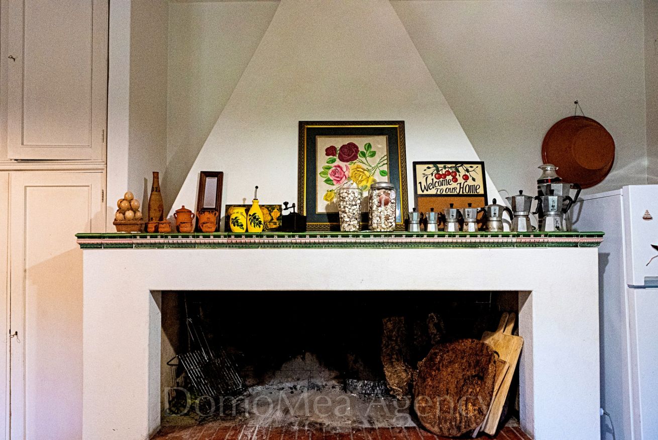 La villa si sviluppa su un unico livello e accoglie gli ospiti in ambienti dal sapore romantico e familiare. Le ampie camere da letto offrono luce naturale, arredi in stile vintage e dettagli originali, come affreschi dipinti a mano incastonati nelle nicchie murarie. I bagni sono funzionali e ben tenuti, mentre la cucina attrezzata e il grande salone con camino invitano a momenti di convivialità in ogni stagione.