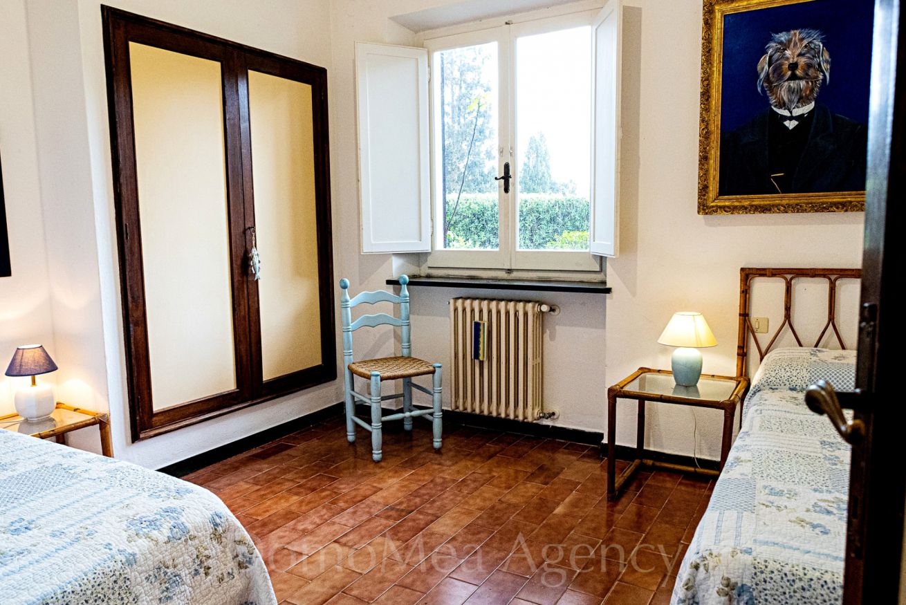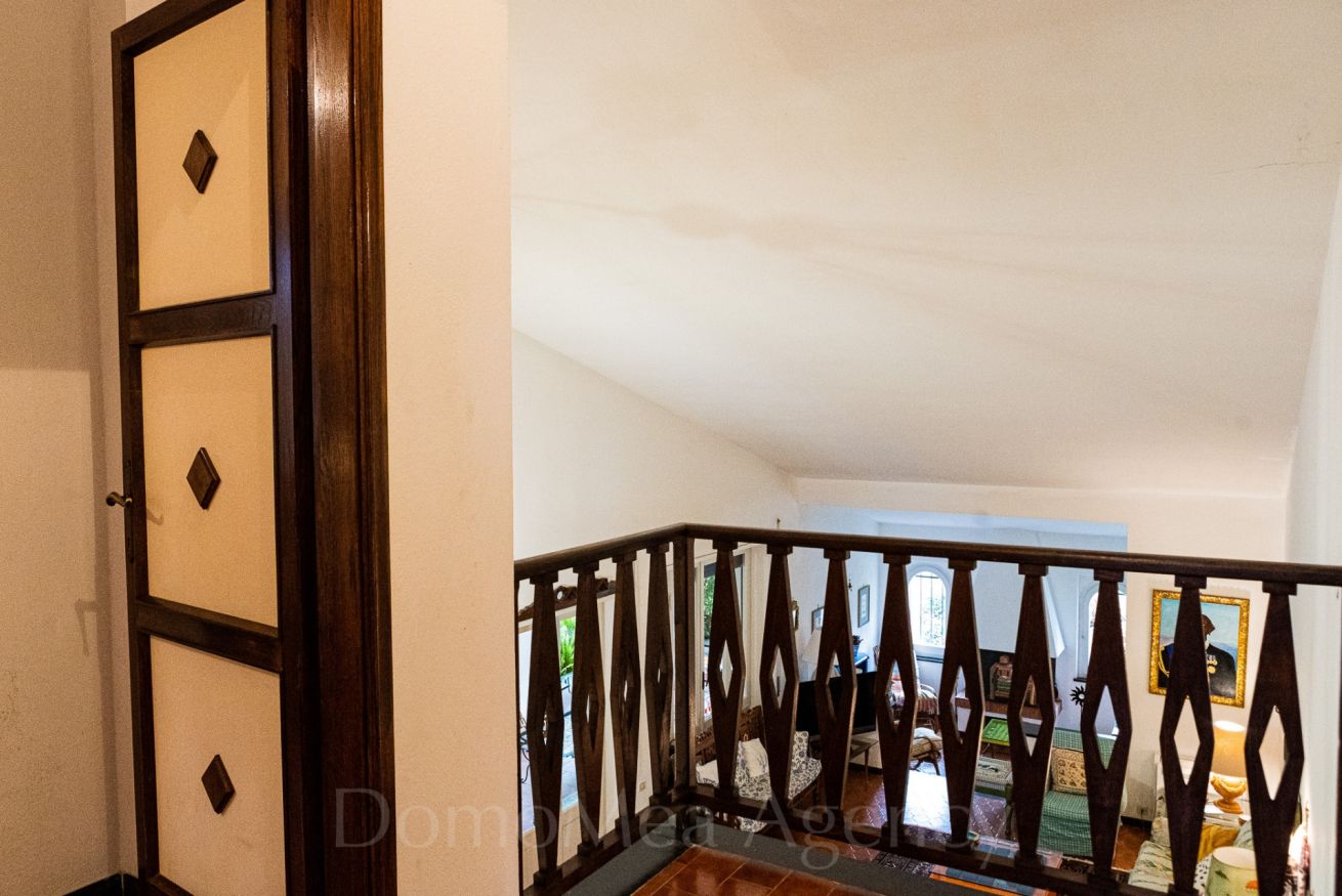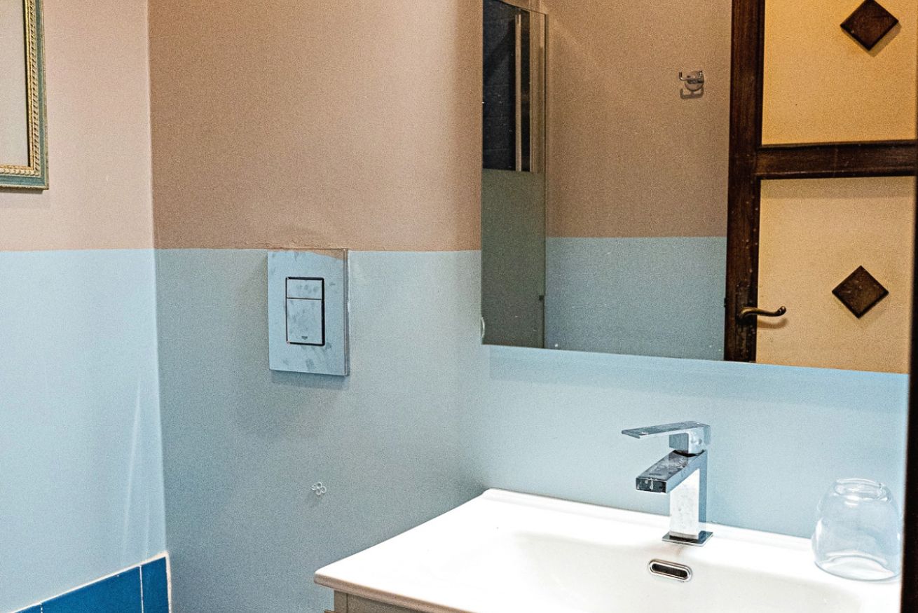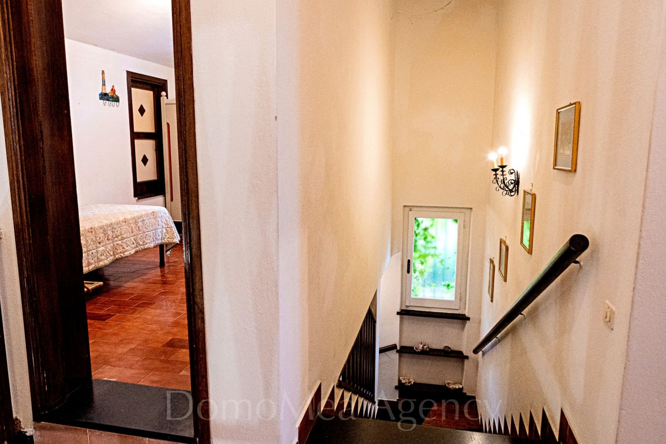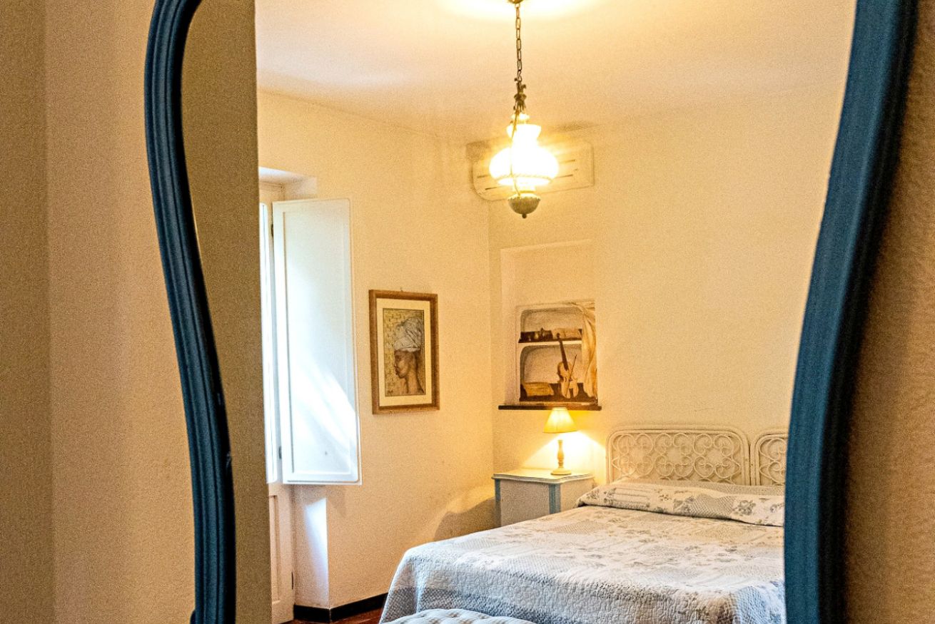 La villa si sviluppa su un unico livello e accoglie gli ospiti in ambienti dal sapore romantico e familiare. Le ampie camere da letto offrono luce naturale, arredi in stile vintage e dettagli originali, come affreschi dipinti a mano incastonati nelle nicchie murarie. I bagni sono funzionali e ben tenuti, mentre la cucina attrezzata e il grande salone con camino invitano a momenti di convivialità in ogni stagione.
