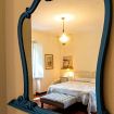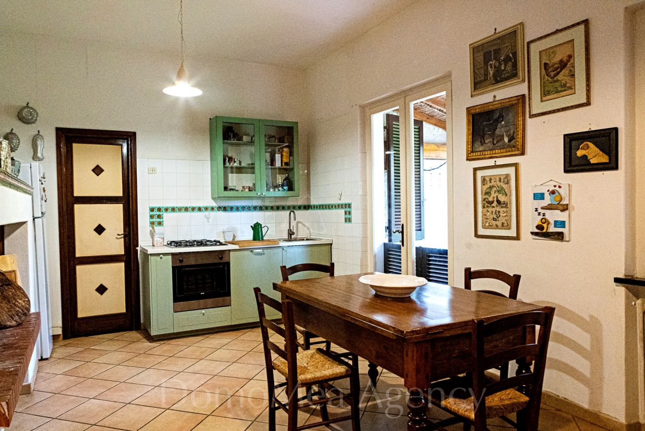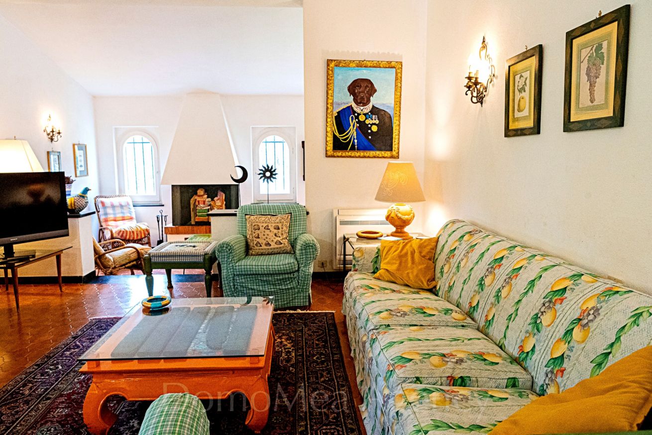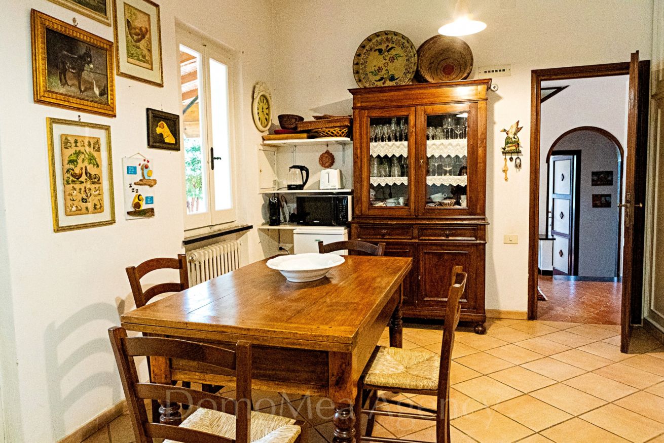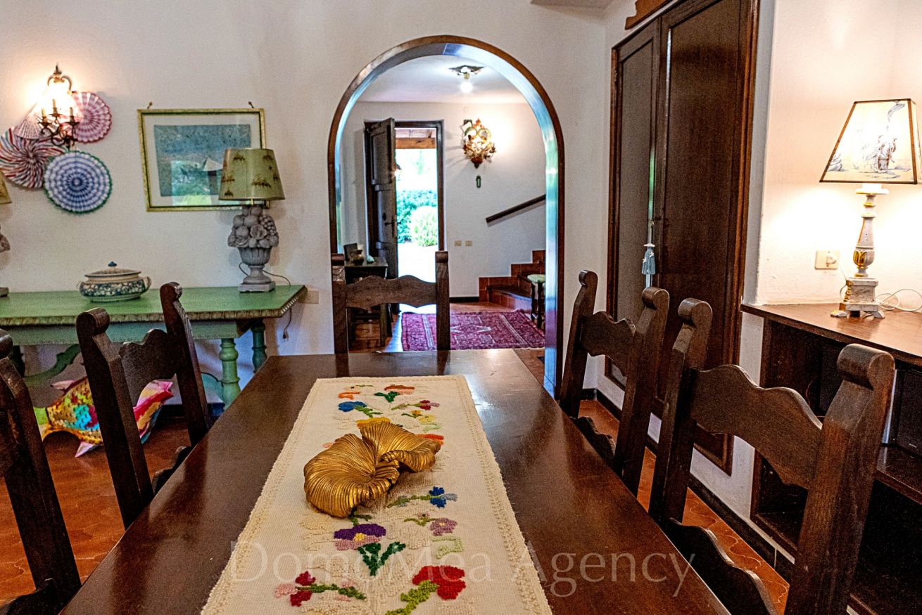 La villa si sviluppa su un unico livello e accoglie gli ospiti in ambienti dal sapore romantico e familiare. Le ampie camere da letto offrono luce naturale, arredi in stile vintage e dettagli originali, come affreschi dipinti a mano incastonati nelle nicchie murarie. I bagni sono funzionali e ben tenuti, mentre la cucina attrezzata e il grande salone con camino invitano a momenti di convivialità in ogni stagione.