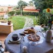 All’esterno, un patio arredato permette di vivere appieno gli spazi all’aperto, con tavolo e sedute per colazioni, pranzi o cene all’aria aperta, immersi nella quiete del giardino circostante.